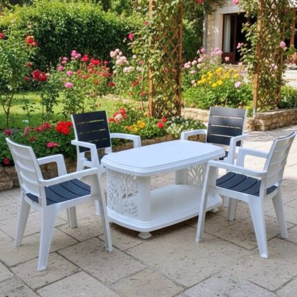 Ratan Plastic Garden indoor/outdoor Chairs & Set of 4 Chairs and stylish double shelf table